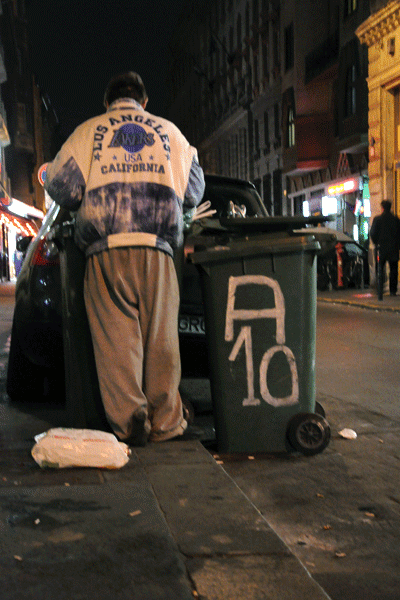 We found a trash bin in the middle of the Gutenberg Square, full with alcohol and fresh foods.